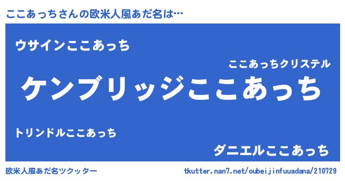 | 男性向けラノベタイトル風あだ名 | 『Re:ここあっちから始める異世界生活』 |