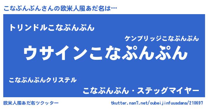 | 男性向けラノベタイトル風あだ名 | 『こなぷんぷんの嫁は女の子じゃないと思った?』 |