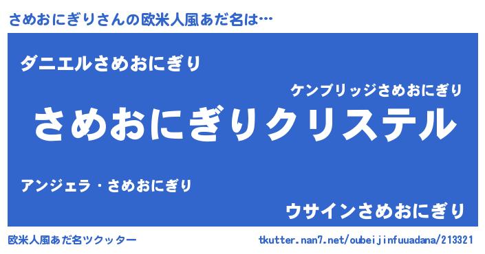 | 意味不明あだ名 | 『さめおにぎりフォーエバー』 |