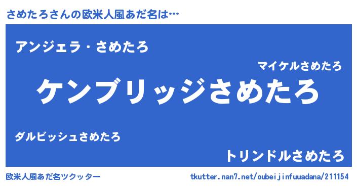 | 男性向けラノベタイトル風あだ名 | 『Re:さめたろから始める異世界生活』 |