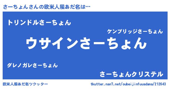 | 男性向けラノベタイトル風あだ名 | 『さーちょんの嫁は女の子じゃないと思った?』 |