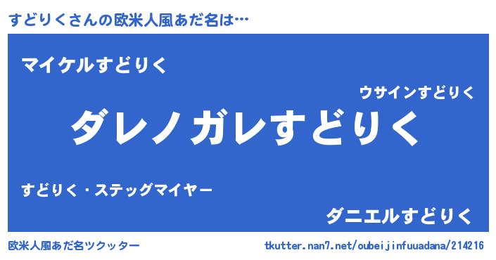 | 男性向けラノベタイトル風あだ名 | 『魔弾の王とすどりく』『すどりくの憂鬱』 |