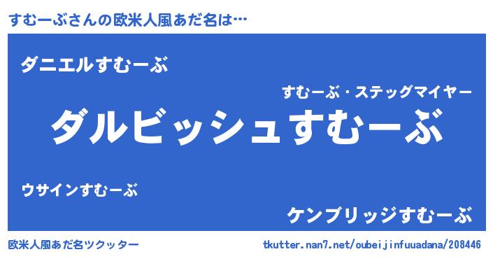 | 男性向けラノベタイトル風あだ名 | 『誰もが恐れるあのすむーぶが、ぼくの専属メイドになるようです。』 |