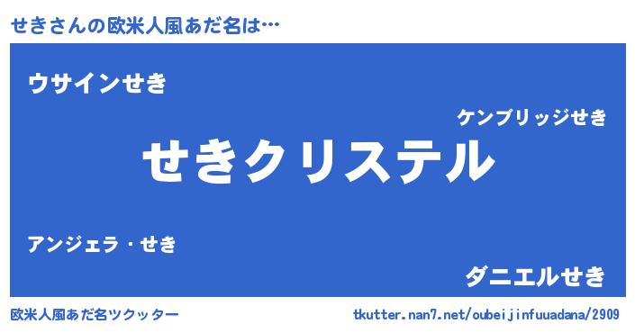 | 女子向けラノベタイトル風あだ名 | 『せきの雑貨屋さん』『せき様がみてる』 |
