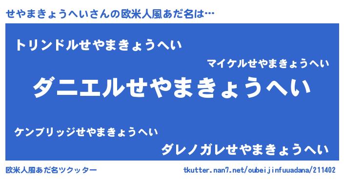 | ヒーロー風カッコイイあだ名 | 『慈愛の使者せやまきょうへい』 |
