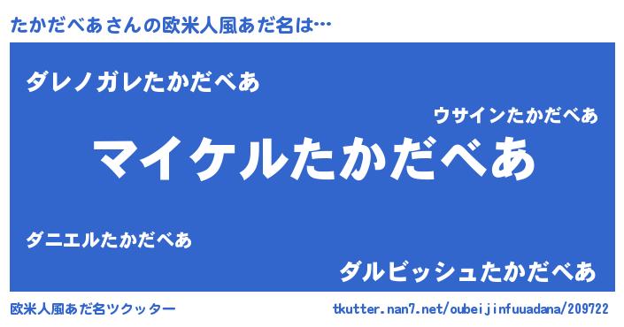 | 女子向けラノベタイトル風あだ名 | 『たかだべあ姫と円卓の騎士』 |