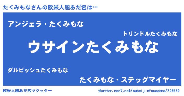 | 女子向けラノベタイトル風あだ名 | 『たくみもなは平凡を望む』 |