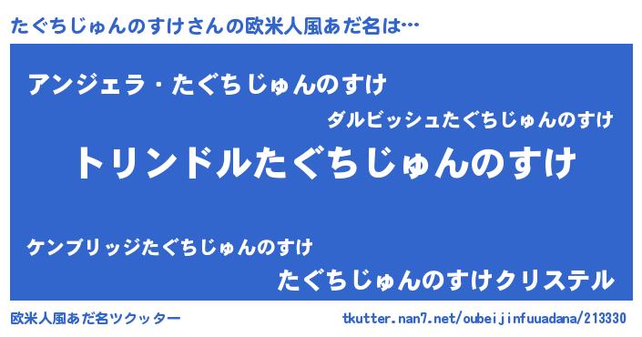 | 男性向けラノベタイトル風あだ名 | 『タグチジュンノスケスレイヤー』 |