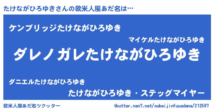 | 意味不明あだ名 | 『住所不定無職たけながひろゆき(65歳)』 |
