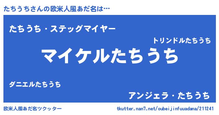| ヒーロー風カッコイイあだ名 | 『スーパータチウチ』『黄金騎士タチ』 |
