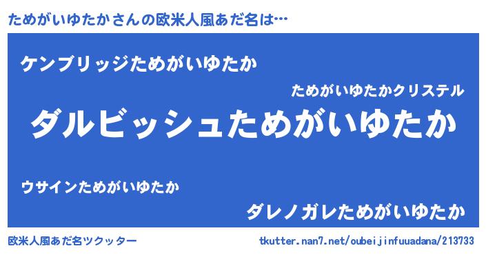 | 男性向けラノベタイトル風あだ名 | 『ためがいゆたかという概念が存在しない退屈な世界 』 |