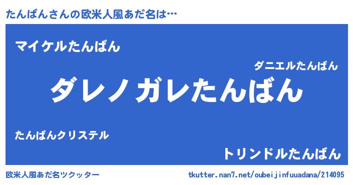 | 意味不明あだ名 | 『住所不定無職たんばん(91歳)』 |