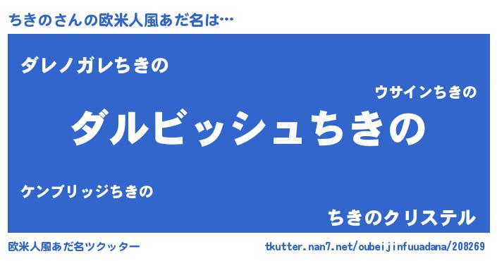 | ヘコむあだ名 | 『ちきの(笑)』『豆乳』『ちきぷりん』 |