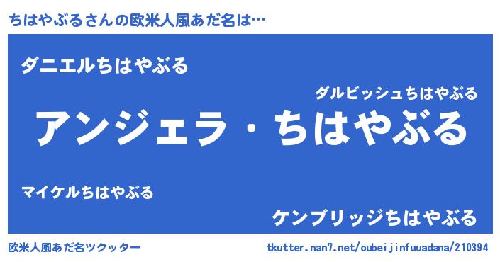 | 男性向けラノベタイトル風あだ名 | 『ちはやぶるに滅ぼされるだけの簡単なお仕事です』 |