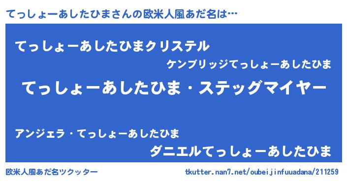 | 意味不明あだ名 | 『てっしょーあしたひまフォーエバー』 |