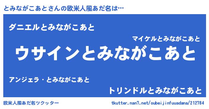 | 男性向けラノベタイトル風あだ名 | 『とみながこあとの嫁は女の子じゃないと思った?』 |