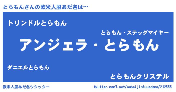 | 男性向けラノベタイトル風あだ名 | 『とらもんに滅ぼされるだけの簡単なお仕事です』 |