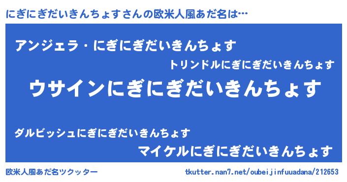 | 意味不明あだ名 | 『とにかく怪しいにぎにぎだいきんちょす』 |