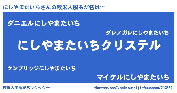| 男性向けラノベタイトル風あだ名 | 『やはりにしやまたいちの青春ラブコメはまちがっている 』 |
