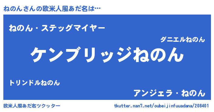 | 男性向けラノベタイトル風あだ名 | 『Re:ねのんから始める異世界生活』 |