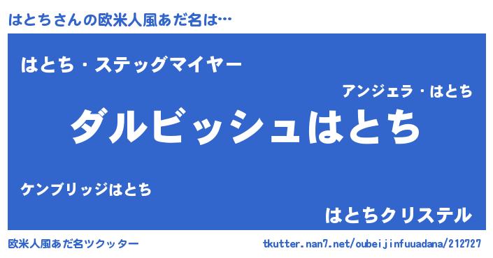 | 男性向けラノベタイトル風あだ名 | 『はとちという概念が存在しない退屈な世界 』 |