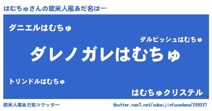 | 男性向けラノベタイトル風あだ名 | 『魔弾の王とはむちゅ』 |