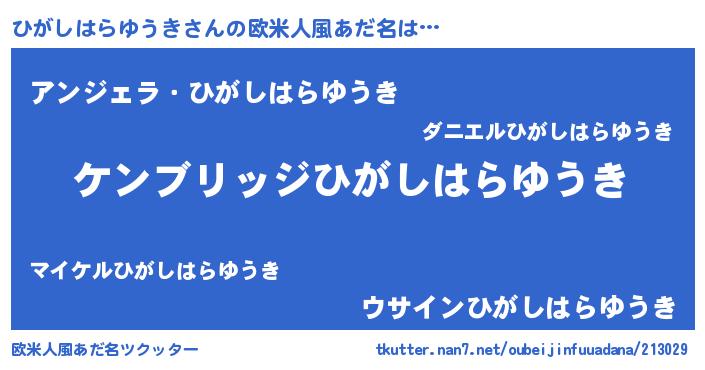| 意味不明あだ名 | 『自称ひがしはらゆうき』 |