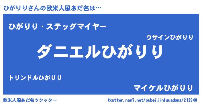 | 男性向けラノベタイトル風あだ名 | 『おまえをオタクにしてやるから、俺をひがりりにしてくれ! 』 |