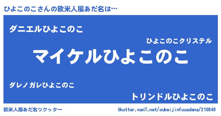 | ピコ太郎風あだ名 | 『ヒコ四郎』『ヒヒ太郎』『ピヒ十郎』 |