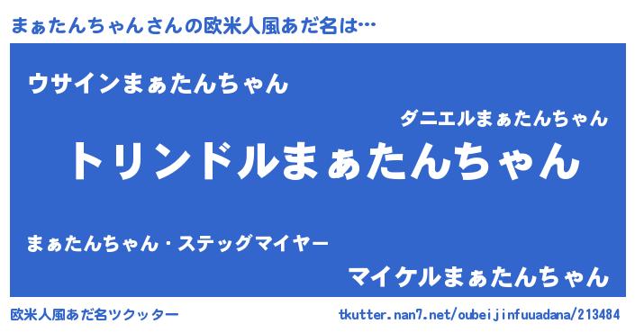| 男性向けラノベタイトル風あだ名 | 『マァタンチャンスレイヤー』 |