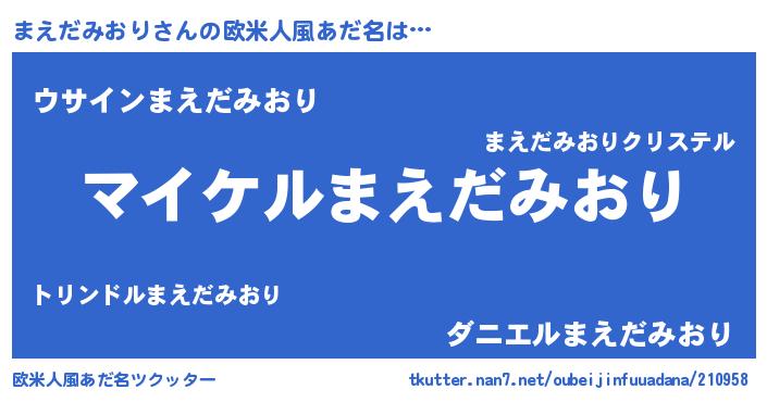 | 男性向けラノベタイトル風あだ名 | 『まえだみおりの憂鬱』 |