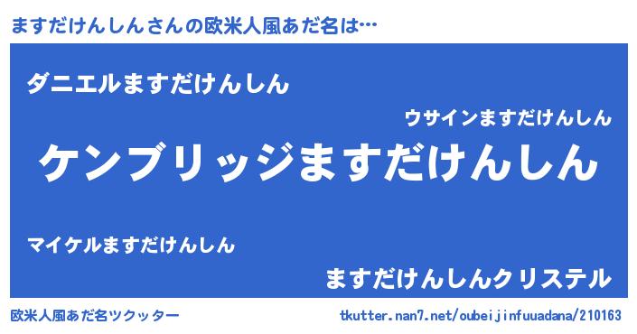 | 男性向けラノベタイトル風あだ名 | 『Re:ますだけんしんから始める異世界生活』 |