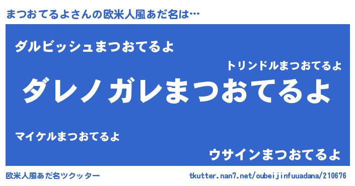 | 男性向けラノベタイトル風あだ名 | 『魔弾の王とまつおてるよ』 |