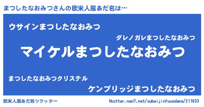 | 胡散臭い通販商品みたいなあだ名 | 『億万長者になれる水晶球…その名も「まつしたなおみつ」』 |