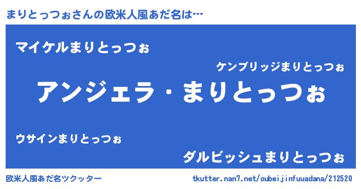 | 男性向けラノベタイトル風あだ名 | 『はたらくまりとっつぉさま!』 |