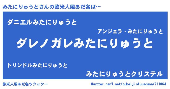 | 男性向けラノベタイトル風あだ名 | 『魔弾の王とみたにりゅうと』 |