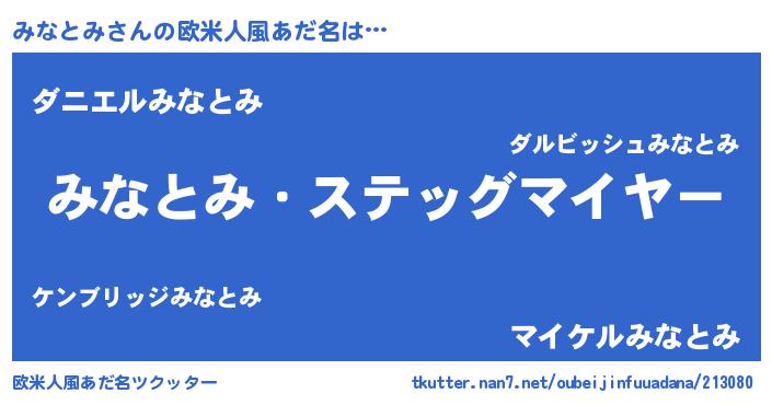 | ヘコむあだ名 | 『みなもー』『みなとみ(苦笑)』 |