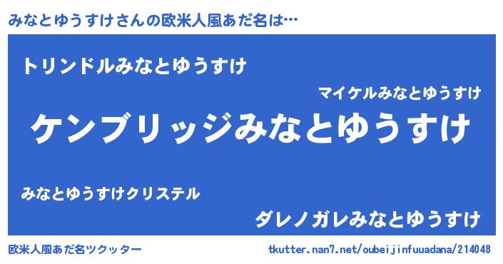 | 男性向けラノベタイトル風あだ名 | 『Re:みなとゆうすけから始める異世界生活』 |