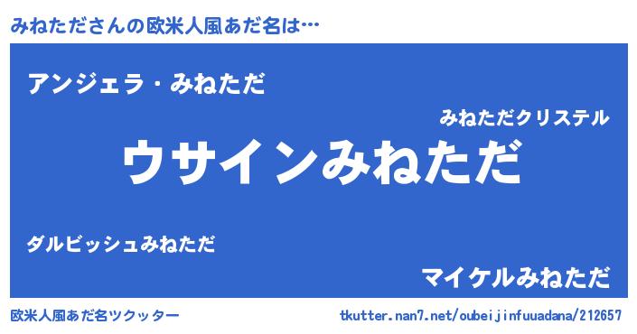 | 男性向けラノベタイトル風あだ名 | 『みねただの嫁は女の子じゃないと思った?』 |