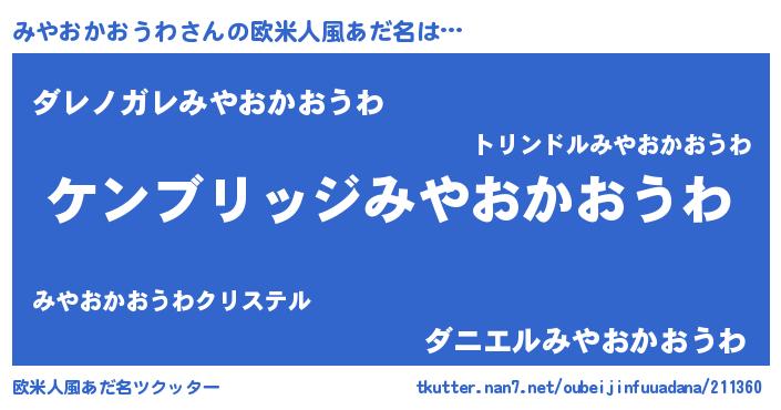 | 女子向けラノベタイトル風あだ名 | 『みやおかおうわなんてお断りですっ。』 |