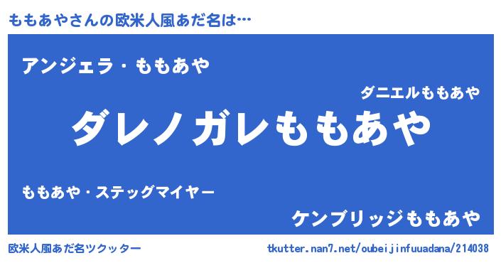 | 意味不明あだ名 | 『住所不定無職ももあや(89歳)』 |