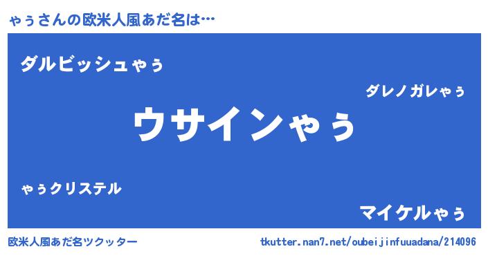 | 女子向けラノベタイトル風あだ名 | 『ゃぅは平凡を望む』『ゃぅの契約王妃』 |