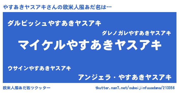 | 男性向けラノベタイトル風あだ名 | 『やすあきヤスアキの憂鬱』 |