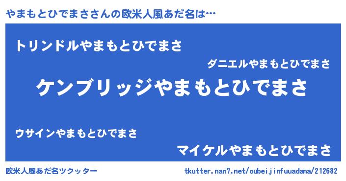 | 男性向けラノベタイトル風あだ名 | 『Re:やまもとひでまさから始める異世界生活』 |