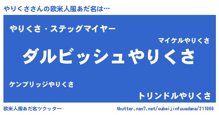 | ピコ太郎風あだ名 | 『ピコヤ郎』『ヤコ一郎』『ヤリ二郎』 |