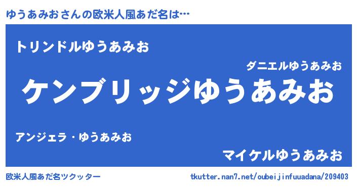 | ヘコむあだ名 | 『ゆうふぇ~』『ゆうあみお(笑)』 |