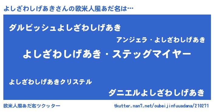 | 可愛いあだ名 | 『よーみん』『よしざわしげあきママ』 |