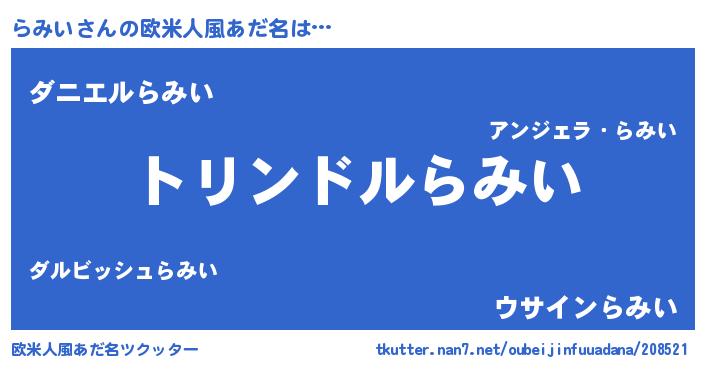 | ヒーロー風カッコイイあだ名 | 『慈愛の使者らみい』『天弓騎士ラミ』 |