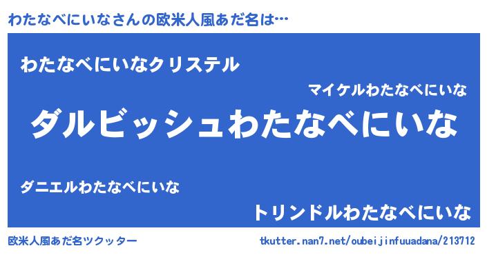| 女子向けラノベタイトル風あだ名 | 『わたなべにいなの契約王妃』 |