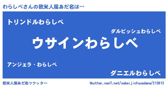 | 男性向けラノベタイトル風あだ名 | 『わらしべの嫁は女の子じゃないと思った?』 |